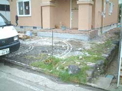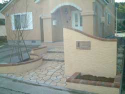 アプローチは蹴り上げにはレンガを使い、床はファンタジーコンクリート仕上げとなりました。