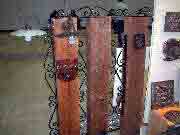 ↑ マクラギを使ったフェンス ¥7,000 アイアンタイプ・多種 マクラギをアイアンでつなぎあわせ、フェンスや門柱として利用できます。 |
